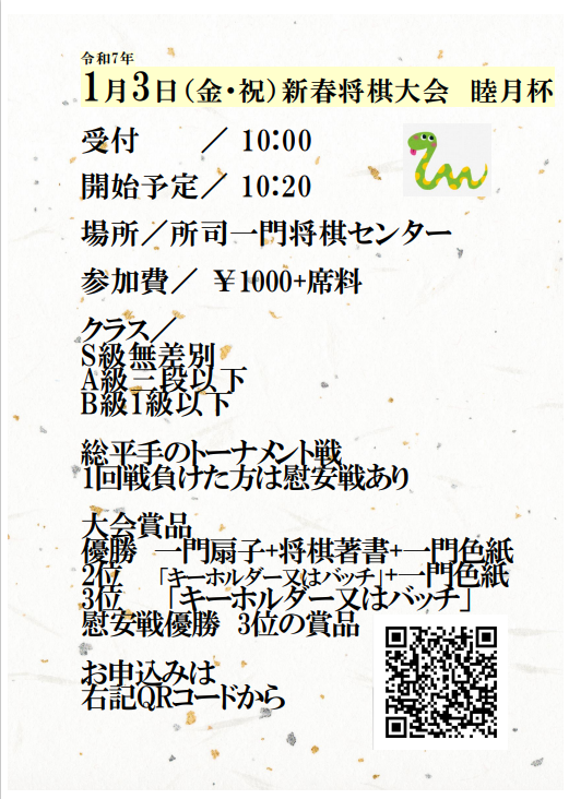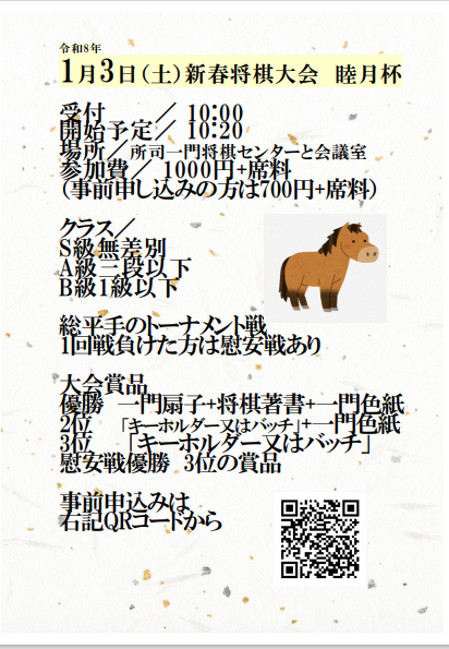 R8年1月3日(土)新春将棋大会を開催します。