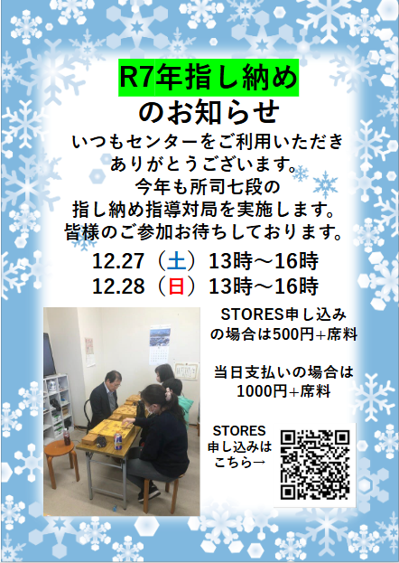 R7年 指し納め 指導対局のお知らせ