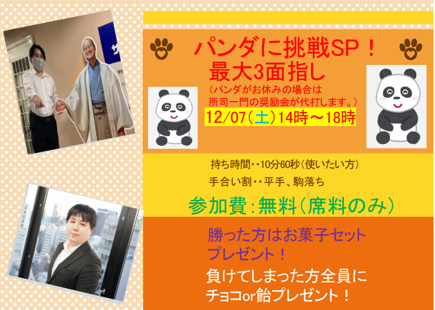 パンダに挑戦のようす(#^.^#)駒落ちで勝ってもお菓子ゲット!!