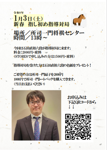 石田直裕六段 新春記念指導対局の申し込みは コチラをクリック