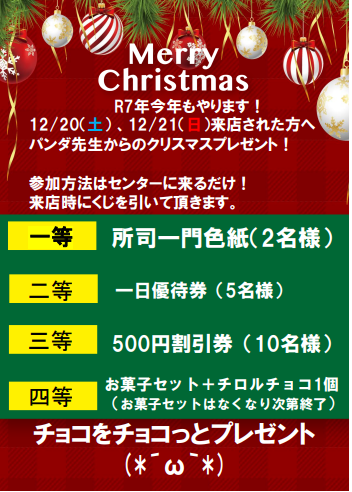 12月20日(土)、21日(日) パンダ先生のクリスマスプレゼント!!