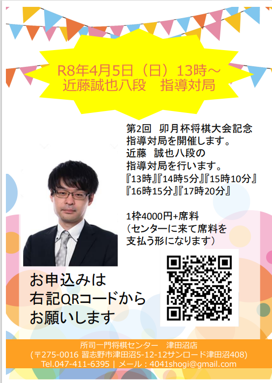 R8年4月5日(日)第2回 卯月杯(うずき)将棋大会、指導対局を開催します。
