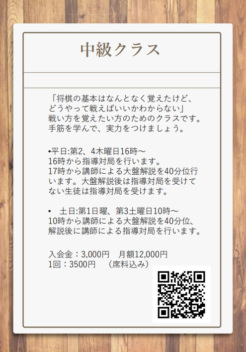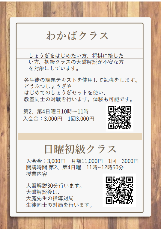 交流会クラス: 対局が初めての方や、対戦をあまりした事が無い方の初心者を対象