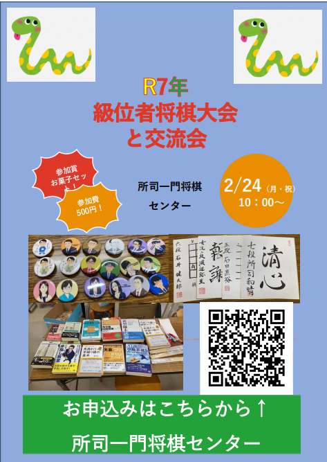 2月24日(月・祝)級位者将棋大会と交流会を開催します。
