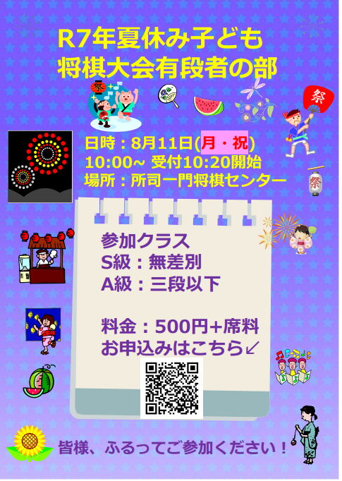 夏休み本番の8月、所司一門将棋センターでは毎年恒例の四大大会、葉月杯を開催します。