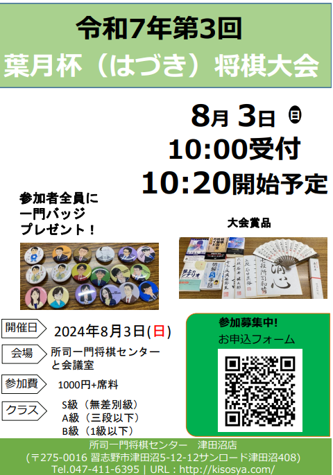 R7年8月3日(日) 津田沼四大大会のお知らせ