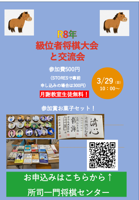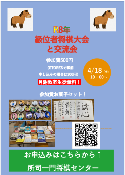 平素より所司一門将棋センターのご愛顧、ありがとうございます。