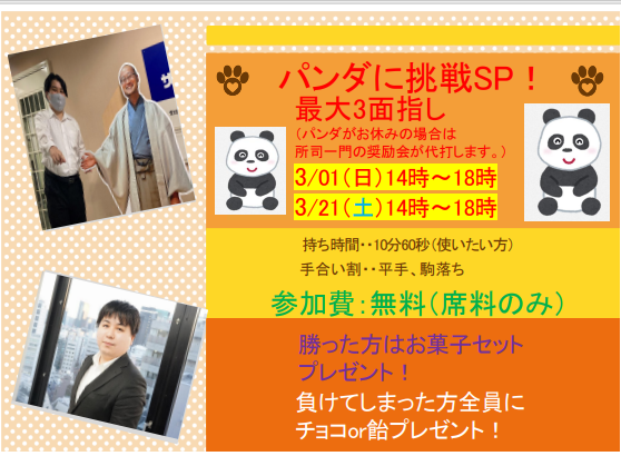 3月、4月の所司一門将棋センターのイベントのお知らせです。